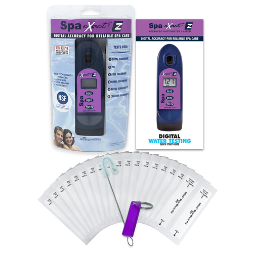 El fotómetro Spa eXact® EZ con certificación NSF / ANSI 50 L1, prueba 7 parámetros importantes del agua del spa con resultados de calidad de laboratorio. Todas las pruebas han sido calibradas específicamente para temperaturas de spa y utilizan nuestras tiras patentadas eXact®. El fotómetro Spa eXact® EZ cuenta un sistema de reactivos rápido y fácil para el análisis.